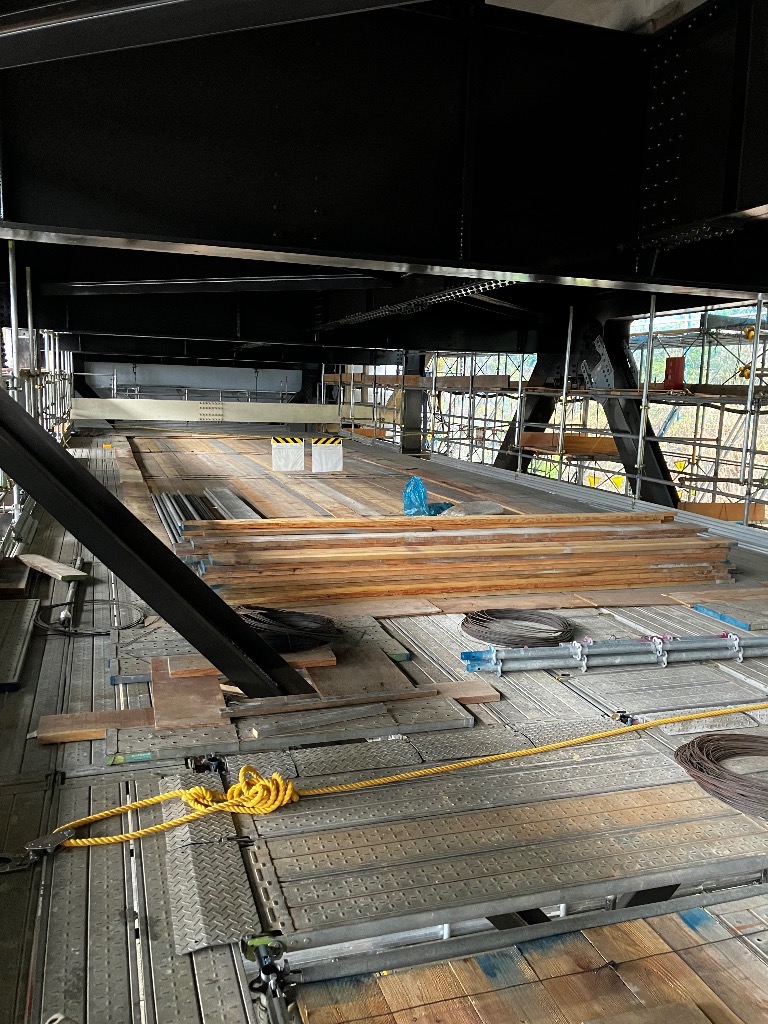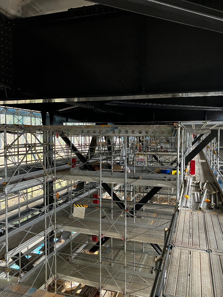 足場自体は既に組み上がっていて、中段足場の盛り変え作業をさせて頂きました。