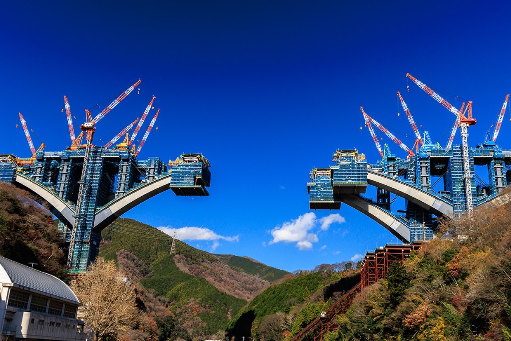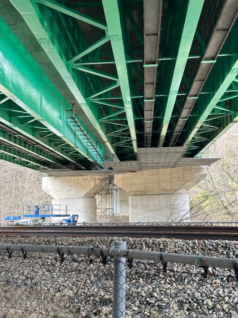 既存の橋の塗り替え、補修工事のために足場を組みます。