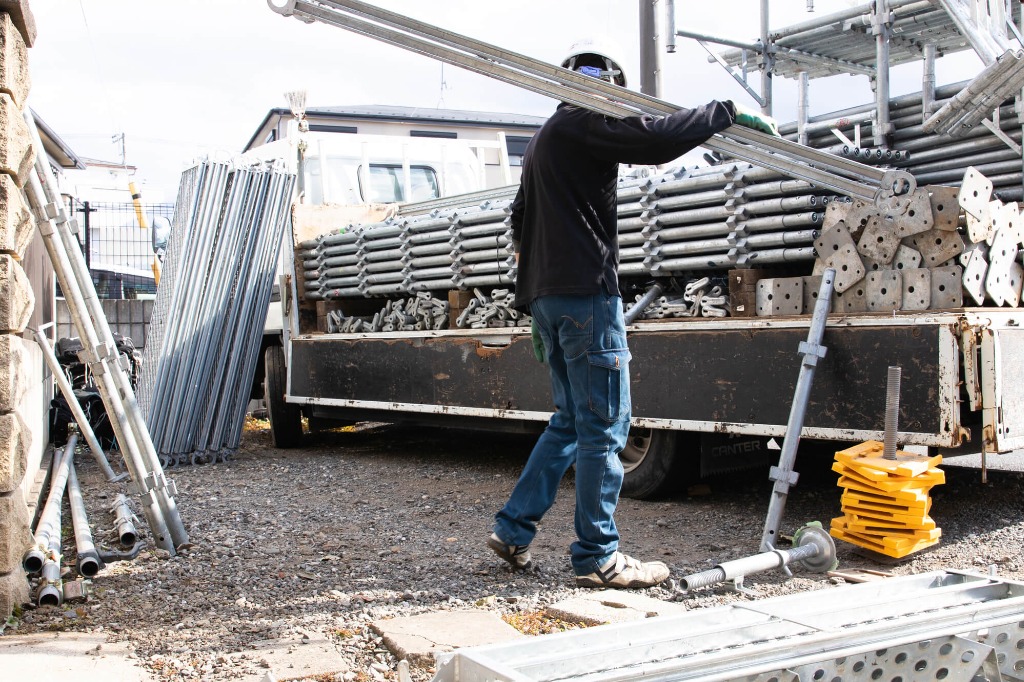 瀬本組では、新築物件だけでなく、改修工事、解体工事のための養生足場の組み立ても行っております。